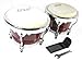 Fantastic pair of professional bongos at a fantastic price. Lovely instrument to play and they look great too. The pattern on the heads is the natural colour of the skin and will therefore differ from the picture - it's unique to each pair. The heads, of course, can be replaced and tuned. As with all real skin heads, they should be de-tuned when not in use for maximum life.