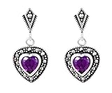 Silver Ladies Marcasite Amethyst Heart Earrings