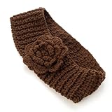 #3: Chunky Brown Knitted Flower Motif Headband Head Warmer Wrap