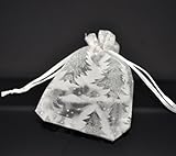 #5: 5 x Organza Christmas Gift Bag, White and Silver Trees, 7cmx9cm