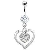 #6: Clear Paved Crystal Heart Dangle Belly Bar